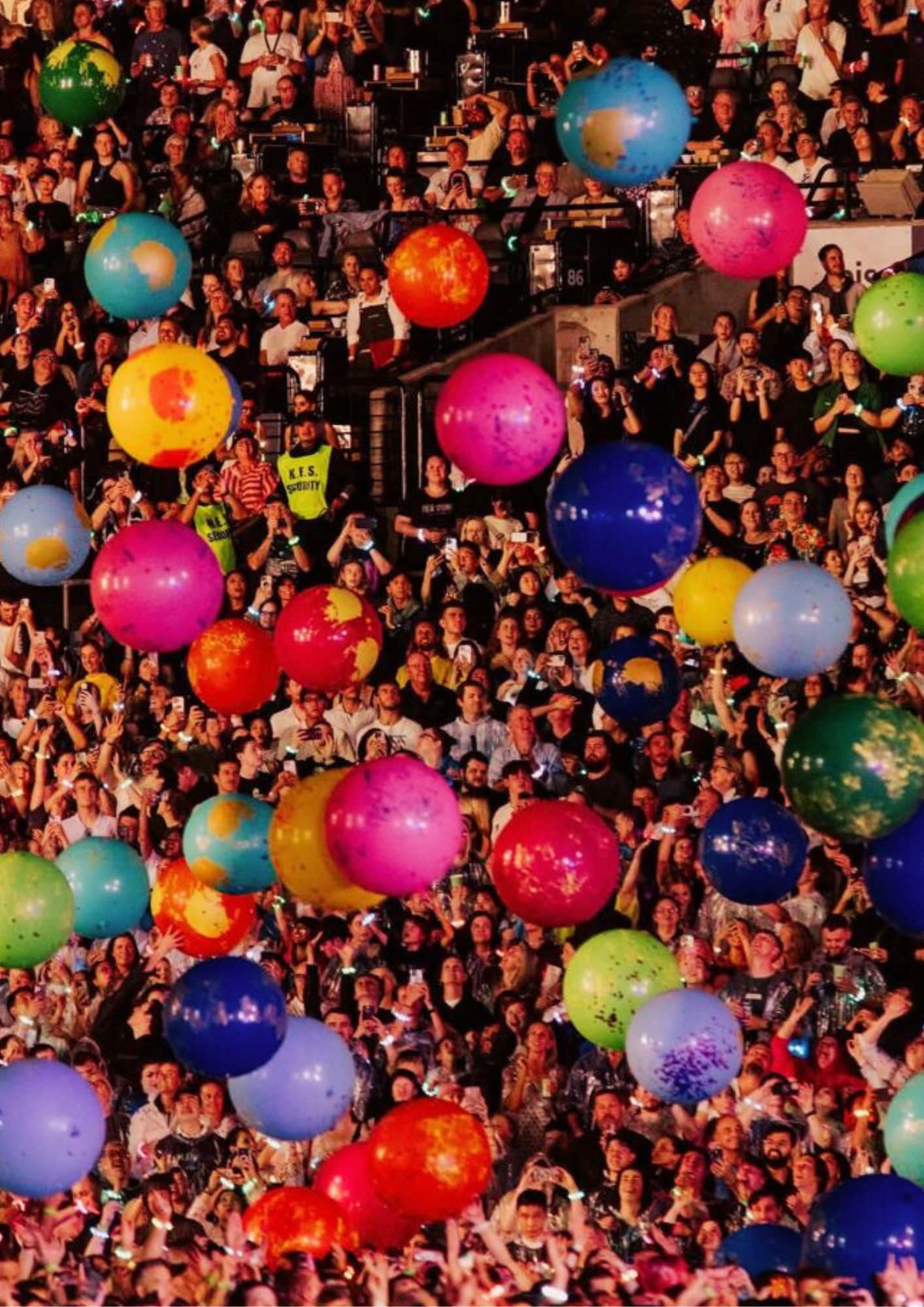 Their shows are a visual spectacle: Every attendee receives an LED wristband that lights up in sync with the music, creating a sea of pulsing colours. Add to that massive screens, immersive animations, fireworks, drones, and joyful cascades, and you’ve got a full-blown sensory explosion.